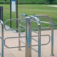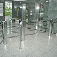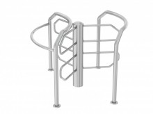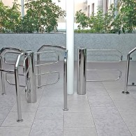 - Half-height motorized revolving turnstile, bi-directional passage mode