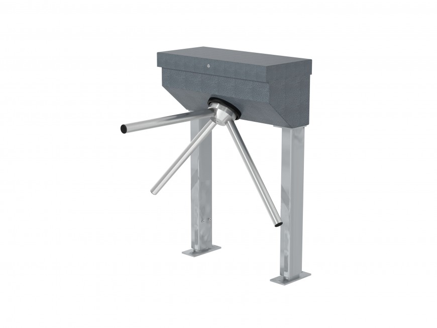 Tripod turnstile with adaptable height for indoor and outdoor installations with alternative surface finishes.