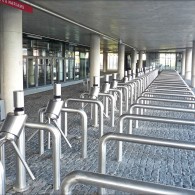 Light weight, attractive and unique designed tripod turnstile with emergency drop arm.