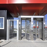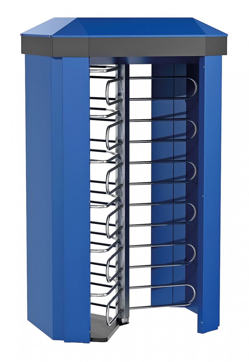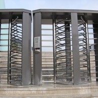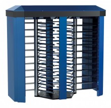 - Full-height motorized turnstile, bi-directional passage mode