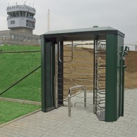 - Full-height motorized turnstile with integrated bicycle gate
